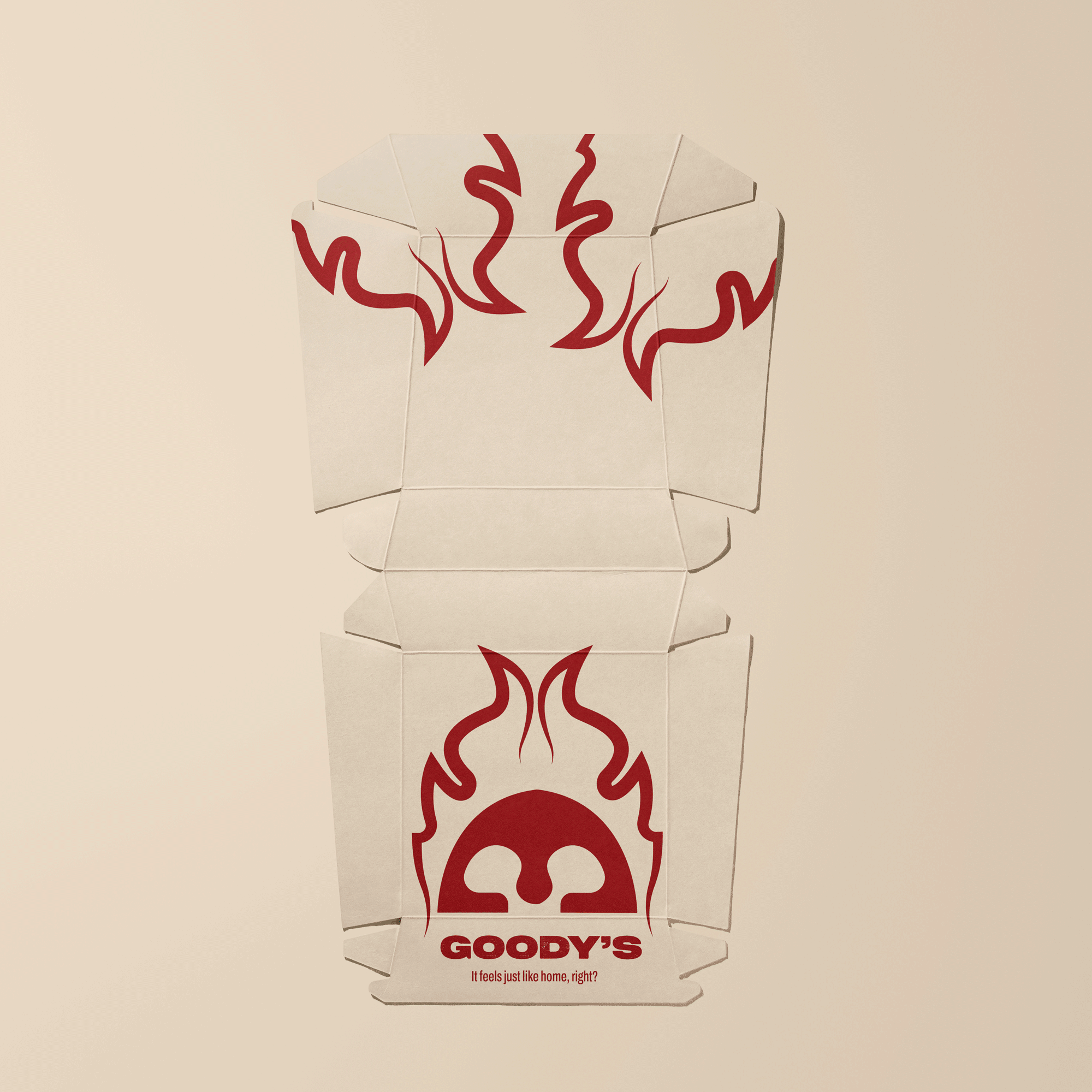 Goody’s tone is playful and social. It builds on lines like “All you need is Love & Fries” and “It’s Good to Share.” The rebrand introduces a warmer voice focused on home and care. Packaging is bold and recognizable, with the logo at its center. The helmet’s “fire hair” adds energy and personality.