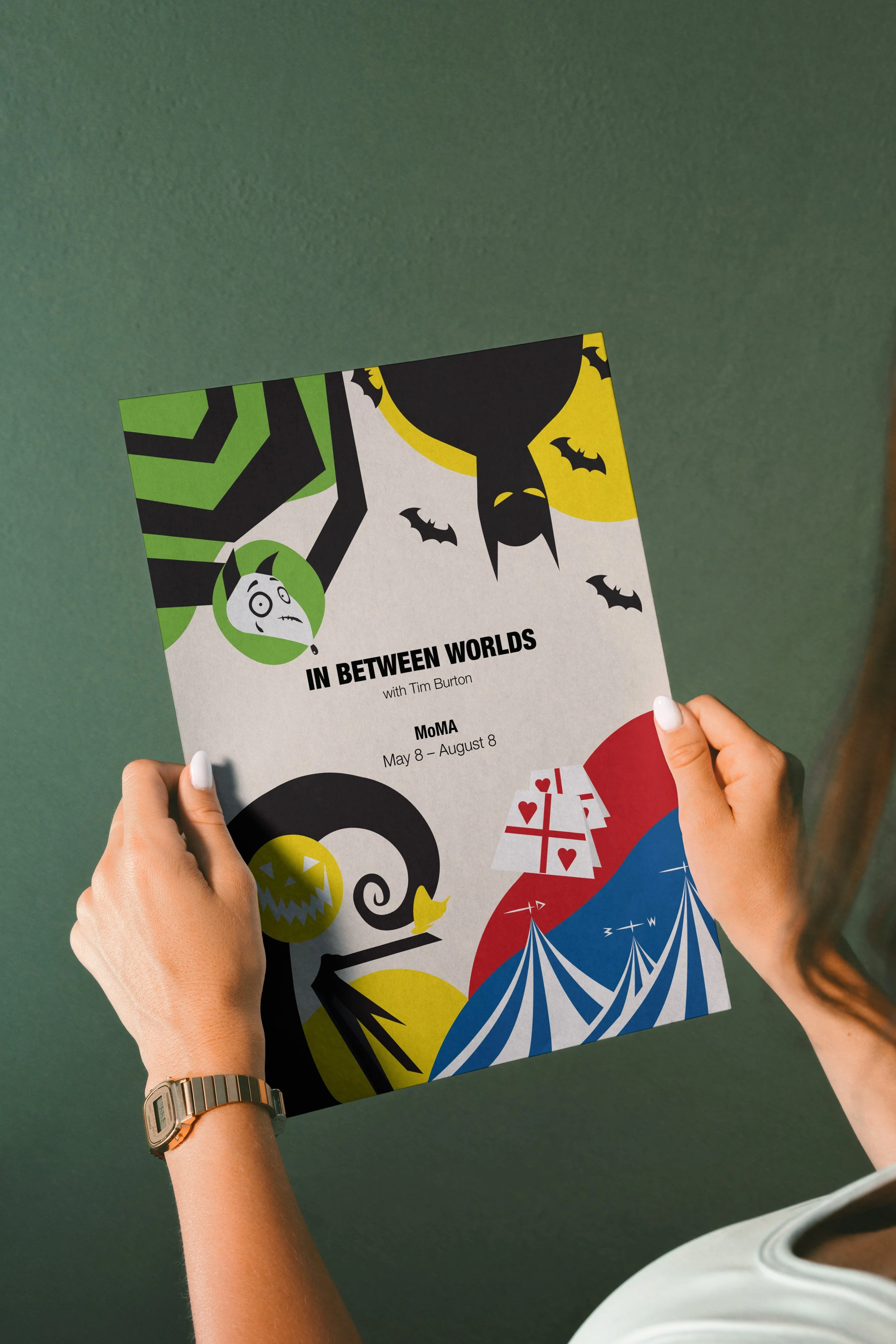 The campaign invites people to step into the world of Tim Burton beyond the walls of MoMA, collecting cards throughout the city. In return, they can redeem their collectible set for a discounted admission completing the loop between citywide exploration and the museum experience. By blending experiential design, illustration, and narrative storytelling, this campaign creates an immersive, playful journey through Burton’s worlds of outsiders, dreamers, and misfits.